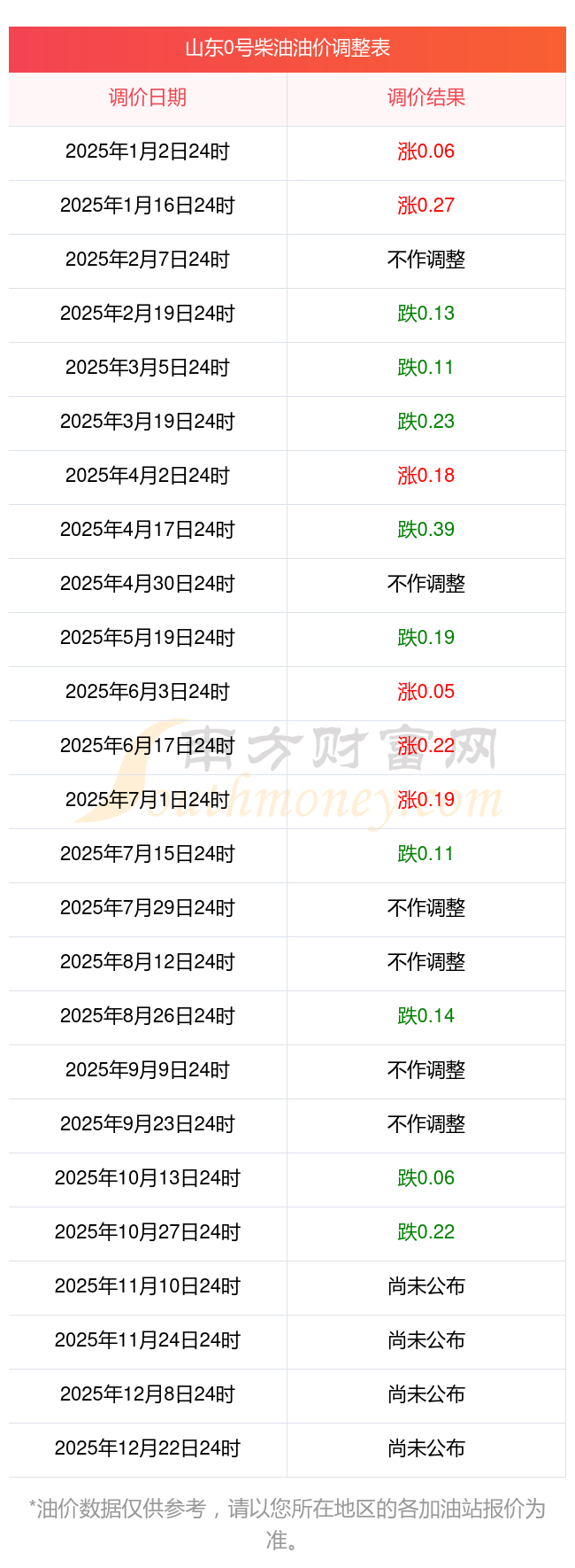 以上数据仅供参阅,请以您地点区域的加油站实践价格为准。南边财富网发布此信息的意图是传达更多详细的信息,对运用该油价信息所导致的成果概不承当职责。