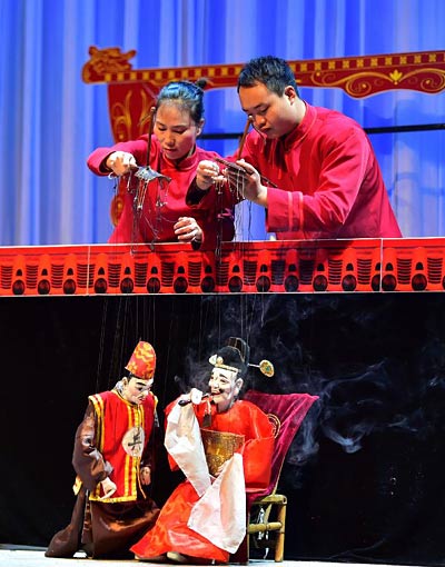 2月16日,福建连城县木偶艺术传习中心的艺人在扮演中控制提线木偶抽烟管。福建连城提线木偶艺术特征明显,是闽粤赣客家人脍炙人口的民间艺术形式,于2009年被列入福建省第三批省级非物质文明遗产名录。连城提线木偶偶人身上的命根线米,连线数量依据情节扮演需求有16至36根不等,加上服饰道具,轻则2公斤,重则超越5公斤,艺人发挥指间绝技,让木偶做出各种动作,栩栩如生。近年来,连城建立木偶艺术传习中心,从文献古籍、扮演典礼、唱腔乐器、戏神崇拜与木偶造型等方面,对连城提线木偶艺术进行研究考证,并大力接收培育年青学员,让这门艺术得到传承和发扬。